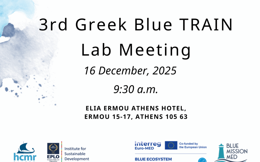 The 3rd Greek Blue TRAIN Lab Meeting: Accelerating Emerging Innovations for the Protection and Restoration of Marine and Freshwater Ecosystems and the Transition to a Sustainable Blue Economy