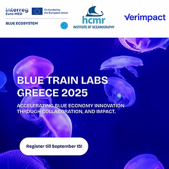 As part of the Blue Ecosystem project, the Institute of Oceanography – Hellenic Centre for Marine Research (HCMR) and VERIMPACT are announcing an open call for the expression of interest of Innovative Ideas from the Greek ecosystem for the Sustainable Transition to Blue Economy, under the initiative called Blue TRAIN Labs.